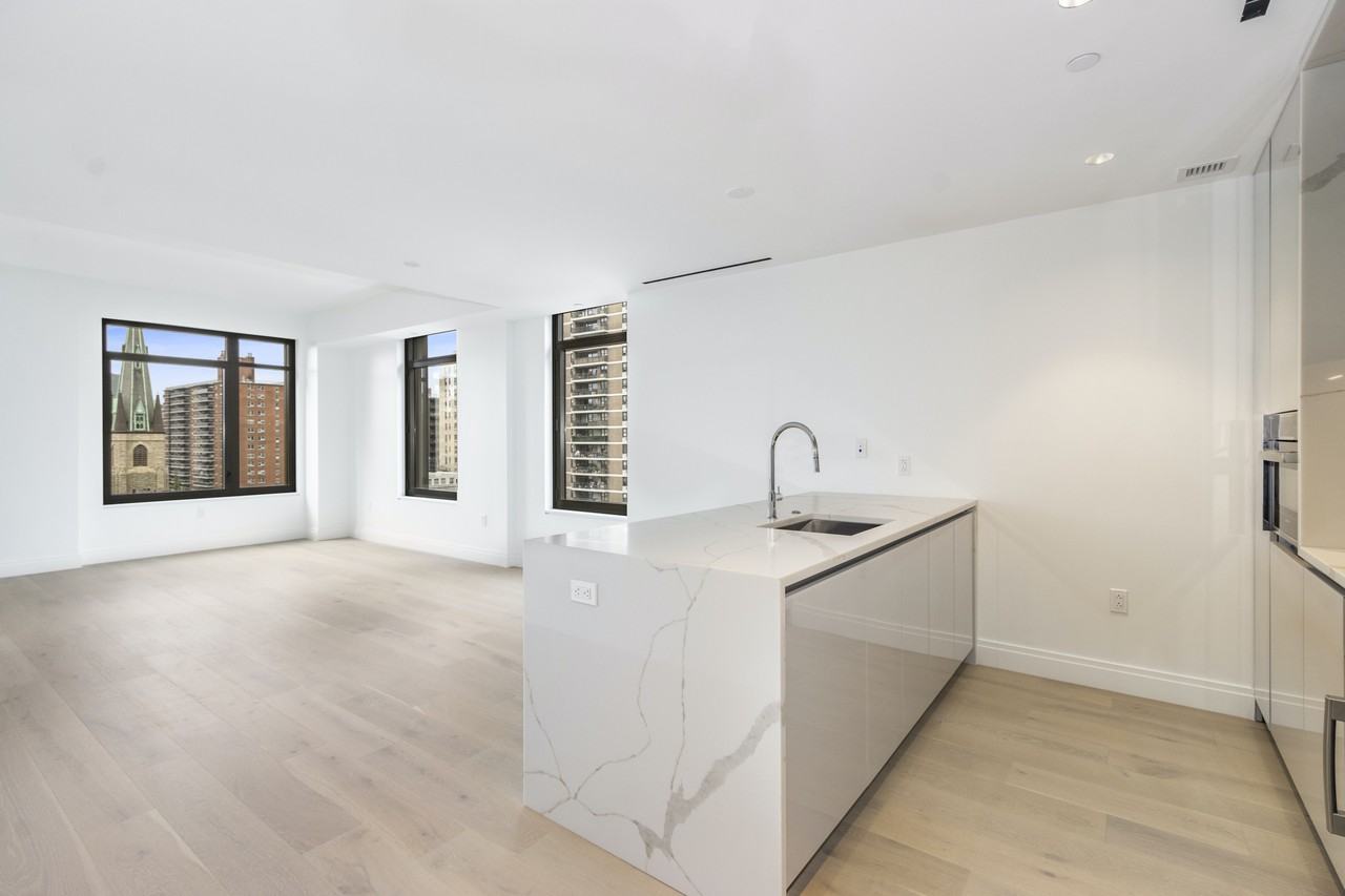 JUST LISTED!! NO FEE!! A gorgeous, never-before-lived-in 3-bedroom, 3-bathroom home at the Dahlia, one of the Upper West Side's newest and most sought after luxury condominiums. Residence 9B at 212 West 95th Street is an urban oasis, flooded with natural sunlight pouring in through oversized picture windows with open city views North, South and East. With soaring 9.5-foot ceilings overhead, well-proportioned living spaces and luxurious finishes of the highest quality, this home offers the best of luxury living on the Upper West Side. A large corner living/dining room stretches over 23 feet, drawing in warming eastern and northern light and looking out over the glorious prewar architecture of the Upper West Side and St Michael's Church, with Central Park in View beyond. Open to the living/dining room is a stunning chef's eat-in kitchen with an island offering additional bar seating. The kitchen is appointed with white polished quartz countertops and backsplash and modern grey glass cabinetry. The appliance suite is top-of-the-line, with a 5-burner gas range and oven that vents to the exterior, microwave and speed oven, refrigerator with double freezer drawer and ice maker and dishwasher, all by Bosch. There is also a discreet laundry closet with a stacked Bosch washer/dryer. Serenely tucked away, the bedroom wing is private and bright with all rooms facing South. The primary suite offers an en-suite four-fixture bathroom with Gris de Savoie tile, radiant heat flooring and Dolomite tile walls. The fixtures are by Dornbracht and there is a double vanity and glass enclosed rain shower as well as a large walk-in closet. One of the two additional bedrooms has its own en-suite bathroom with soaking tub as well as a walk-in closet. The third bathroom is located centrally in the bedroom corridor and is perfect for guests or in service of the third bedroom. A brand new development designed by award-winning architecture firm CetraRuddy, the Dahlia is an elegant and modern addition to the Upper West Side which blends seamlessly into the fabric of the neighborhood's classic aesthetic. A boutique condominium consisting of only 38 residences, residents enjoy an attentive staff with a full-time doorman/concierge as well as an amenity suite featuring a state-of-the-art fitness center with yoga room, a massive elevated terrace with separate lounge area and children's playground, a music room, children's play room, pet spa and bike storage. Nestled in one of the most vibrant areas of the Upper West Side, the building is in close proximity to both Riverside Park and Central Park and surrounded by a wealth of restaurants, shopping and entertainment options and all major public transportation. Pets are welcome.