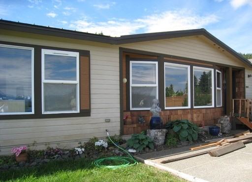 This three bedroom 2 bath manufactured home has been well cared for. The kitchen has eating bar and dining area. Living room and office area with unique design. Spacious master with a propane fireplace and access to the yard and hot tub. The private bath boasts a soaking tub and lots of counter space. Two additional bedrooms and laundry room with lots of storage. Carport next to the house and a two car detached shop. Storage shed, fire pit and incredible view! Water (base) included.