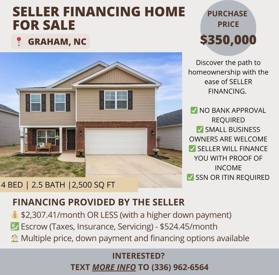 🔊 OWNER FINANCING / Una Casa con Financiamiento del Vendedor. 👀 NO BANK REQUIRED 🚫🏦🚫 NO SE REQUIERE BANCO Seller will finance YOU/ El vendedor te financiará. Single Family Home for Sale - (Rent To Own) 2,500 sqft - 4 beds / 2.5 full bath 2023 Build Newly built and well maintained 6,970 sq ft lot Owner Financing Terms: Option 1: Purchase Price: $350,000 Down Payment: $20,000 Owner Financing Amount: $330,000 Loan Term: 30 Years- Rate: 7.5% Monthly Payment: $2,307.41/month (Locked in for 30 years) Escrow (Taxes, Insurance, and servicing): $524.45/month (Current amount now- can change over time) Total: $2,831.86/month Option 2: Purchase Price: $355,000 Down Payment: $15,000 Owner Financing Loan Amount: $340,000 Loan Term: 30 Years- Rate: 8.25% Monthly Payment: $2,554.31/month (Locked in for 30 years) 🎯 Escrow (Taxes, Insurance, and servicing): $524.45/month (Current amount now- can change over time) Total: $3,078.76/month Loan Terms can be FLEXIBLE! NO PREPAYMENT PENALTIES Why rent when you have the opportunity to own! No landlord can raise rent on you again! Become a home OWNER! Una Casa con Financiamiento del Vendedor / Owner Financing Dueño a Dueño (Sin necesidad de un préstamo bancario.) Casa Unifamiliar en Venta - (Alquiler con Opción a Compra) 2,500 pies cuadrados - 4 recámaras / 2.5 baños completos Construida en 2023 Terreno de 6,970 pies cuadrados Términos de Financiamiento del Propietario: Opción 1: Precio de Compra: $350,000 Pago Inicial: $20,000 Cantidad Financiada por el Propietario: $330,000 Plazo del Préstamo: 30 años- Tasa: 7.75% Pago Mensual: $2,307.41/mes (Fijado por 30 años) 🎯 Fideicomiso (Impuestos, Seguro y servicio): $524.45/mes (Estimado actual, pero puede cambiar) Total: $2,831.86/month Opción 2: Precio de Compra: $355,000 Pago Inicial: $15,000 Cantidad Financiada por el Propietario: $340,000 Plazo del Préstamo: 30 años- Tasa: 8.25% Pago Mensual: $2,554.31/mes (Fijado por 30 años) 🎯 Fideicomiso (Impuestos, Seguro y servicio): $524.45/mes (Estimado actual, pero puede cambiar) Total: $3,078.76 Los términos del préstamo pueden ser FLEXIBLES ¿Por qué alquilar cuando tienes la oportunidad de ser dueño? ¡Ningún arrendador puede aumentar el alquiler nuevamente! Conviértete en dueño de casa.