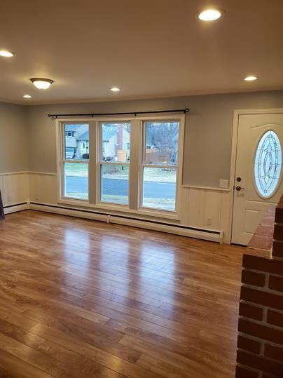 This 3 BR/2 BA Single family home has been ELEGANTLY REMODELED, top to bottom! Newer hardwood flooring throughout, recessed lighting, Kitchen with custom tile work, granite counters, stainless appliances with under mount sink. Washer and Dryer hook ups in the basement. Spacious Living Room and 3 very generous sized Bedrooms, all with wood floors and ceiling fans. Remodeled Bathroom with new fixtures and fully finished Basement with hard wood flooring and extra storage space. Oil heat and new windows make this extremely energy efficient. 1-car port, private entrance, and plenty of off-street parking. Located on the Glastonbury line, convenient to award winning restaurants, shopping, and highways. Open concept between kitchen and living space. Large fenced yard with detached work shed. Tenant responsible for all utilities, water, yard maintenance and snow removal. Must see!! Won't last long.....