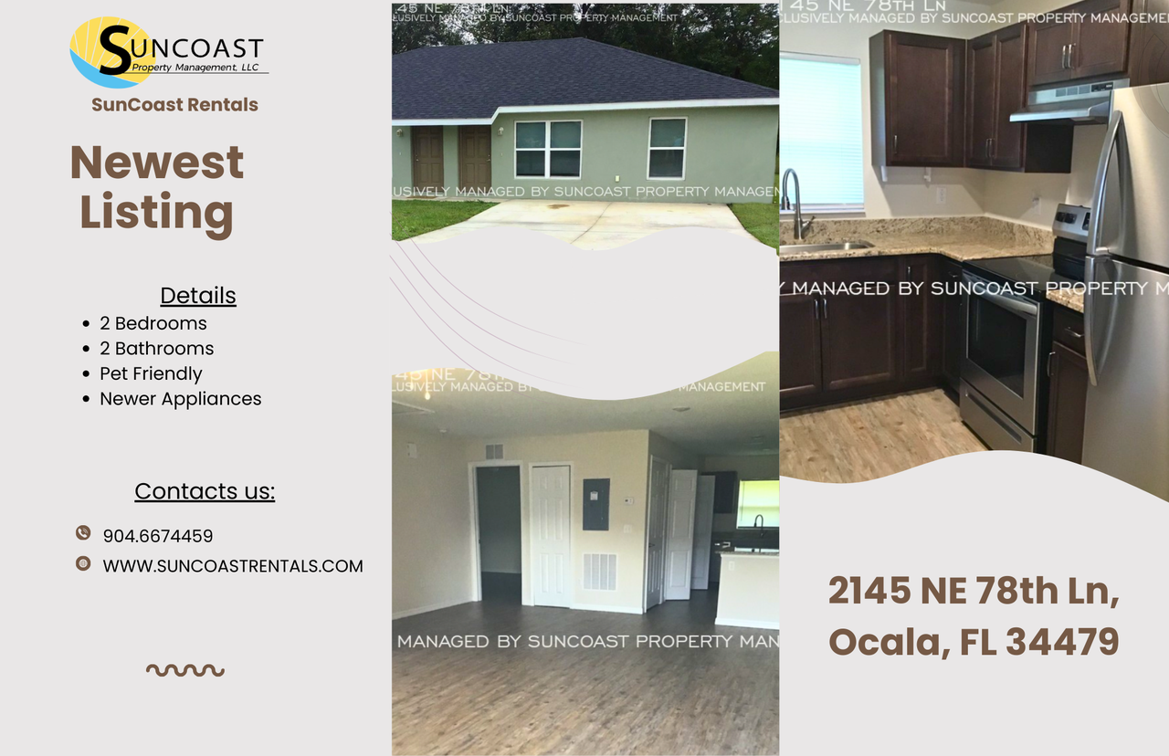 Dazzling 2BR/2BA duplex for rent! Features an open concept floor plan, vinyl plank flooring, granite counters, and stainless steel appliances! Pet-friendly with breed approval and non-refundable fee. Apply online today! Photos are for illustration purposes only and some details may differ! *Bonus Amenity* An additional $55.00 monthly will be due in order to have HVAC filters regularly delivered to the tenant's doorstep under the Utility & Maintenance Reduction Program. This saves 5-15% on your energy bill and helps ensure a clean, healthy living environment. This Amenity is in addition to the advertised rental amount and is required. Suncoast Property Management does require tenants to carry renter's insurance with Suncoast Property Management listed as additionally insured. Proof of renter's insurance must be provided prior to the tenant's scheduled move-in.