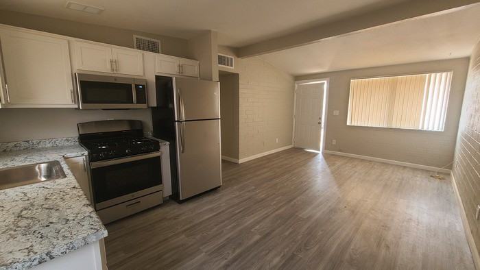 Fully Renovated with all new stainless steel appliances, fresh paint, all laminate flooring, vaulted ceiling. Lots of closets, HUGE bathroom!!!!! Tenant is responsible for all utilities. Contact us to schedule a showing.