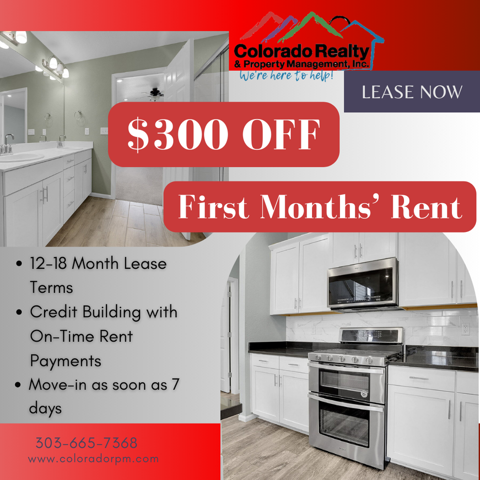 Advertised rent includes: Base Rent: $2,350 Resident Benefits Package: $35 Renters Insurance Opt-Out: $10.95 Move in Special: $300 OFF FIRST MONTH'S RENT Welcome to a thoughtfully designed 3 bedroom, 2.5 bath townhome where you are greeted by a cozy front porch. Inside you're leading to the living room with high ceilings, giving the space an airy, open feel as it flows directly into the full kitchen. The kitchen features stainless steel appliances, a central island, and a roomy eat in area off to the side. Just off the main floor you’ll also find an attached two car garage for easy access and extra storage. Upstairs, the three bedrooms provide privacy and comfort. The spacious primary suite offers a private bathroom with dual sinks and an attached closet. The additional two bedrooms share a full bath. A dedicated laundry room complete with washer and dryer adds convenience. You’ll enjoy central AC for year-round comfort. This home sits in a vibrant part of Aurora, close to parks, trails, and green space, and within reach of shopping, dining, and entertainment. Residents appreciate access to transit options including the nearby RTD light rail via Aurora Metro Center station — making commutes or trips into Denver convenient. For evenings out or weekend errands, the dynamic mix of cultural spots, eateries, and retail offerings in the area provide a balanced lifestyle. We are pledged to the letter and spirit of the U.S. Policy for the Achievement of Equal Housing Opportunity throughout the Nation. We encourage and support a program in which there are no barriers to obtaining housing because of Race, Color, Religion, Sex, Handicap, Familial Status, or National Origin, and comply with all state and local fair housing laws. Things to know about this property: *No smoking. *Renter's insurance is required. *Tenant is responsible for utilities, except trash, landscaping and snow removal. *Maximum of two indoor pets (Breed Restrictions Apply) *(http www coloradorpm com tenant-frequently-asked-questions ) *Monthly pet fee of $35 or 1.5% of the tenant's monthly rent, whichever amount is greater. *Refundable deposit of $300 for pet(s) *Refundable security deposit equivalent to 1x of one month’s rent *Nonrefundable lease initiation fee equivalent to 10% of one month's rent (paid 2nd month of the lease) *Other terms, fees, and conditions may apply. All information is deemed reliable but not guaranteed and is subject to change. **All Colorado Realty & Property Management residents are enrolled in the Resident Benefits Package (RBP) for $45.95/month which includes renters insurance, HVAC air filter delivery (for applicable properties), credit building to help boost your credit score with timely rent payments, $1M Identity Protection, our best-in-class resident rewards program, and much more! More details upon application.** The following criteria must be met in applying: *Equifax score of 680 or above. All scores below 680 will be declined. *Gross income must be equal to 2x the monthly rent. Applicants must provide pay-stubs covering 30 consecutive days of gross income. If self-employed, tax returns must be provided. *Income Qualification with Public Housing Benefits: Where Applicants are qualified for affordable housing vouchers or other public housing payments, the amount of that voucher/payments will be first subtracted. The following criteria must be met in applying: *Convictions for sex offenses, stalking, manufacturing and/or distributing..