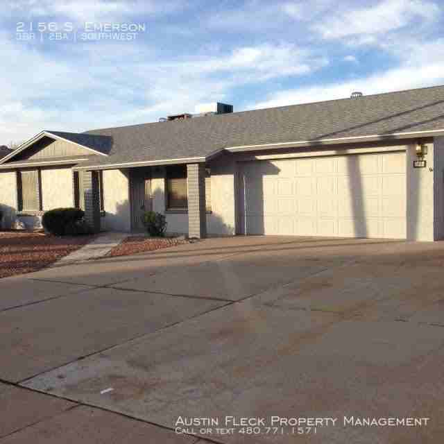 Beautifully remodeled ranch style home with a sparkling pool in the heart of Mesa. 3 large bedrooms with new carpet, paint and ceiling fans. Wonderful open floorplan with wood flooring in living, family and spacious kitchen. Full covered patio overlooking a fenced diving pool and a large grass backyard. Large 2 car garage and extended driveway. Major Crossroads: Alma School & Baseline Near: Fiesta Mall, US-60 freeway, Banner Hospital, Mesa Community College, ASU, Phoenix Sky Harbor Airport, Shopping & Restaurants Deposit: is equal to first month?s rent. Pets: O.K. with additional refundable deposit Appliances: All built-ins provided and warranted. (Any personal property items, such as washer/dryer or refrigerator, if provided, are in AS-IS condition.) Application Fee: $35.00 per applicant, non-refundable. A one-time non-refundable administration fee of $195 will be charged at your lease signing if you are the chosen applicant and move into the property. How to View: Please call the office between 9 a.m. and 5 p.m. Monday through Friday to schedule a viewing. (We are unable to schedule viewings via email.) REALTOR The information contained in this ad is accurate to the best of our knowledge. Austin Fleck Property Management is not responsible for any error or omission in the wording or content of this information. 2 Bath 2 Car Garage 3 Bedroom Pool Pool Fencing Exists Seperate Lr / Fr Srp Vaulted Ceilings
