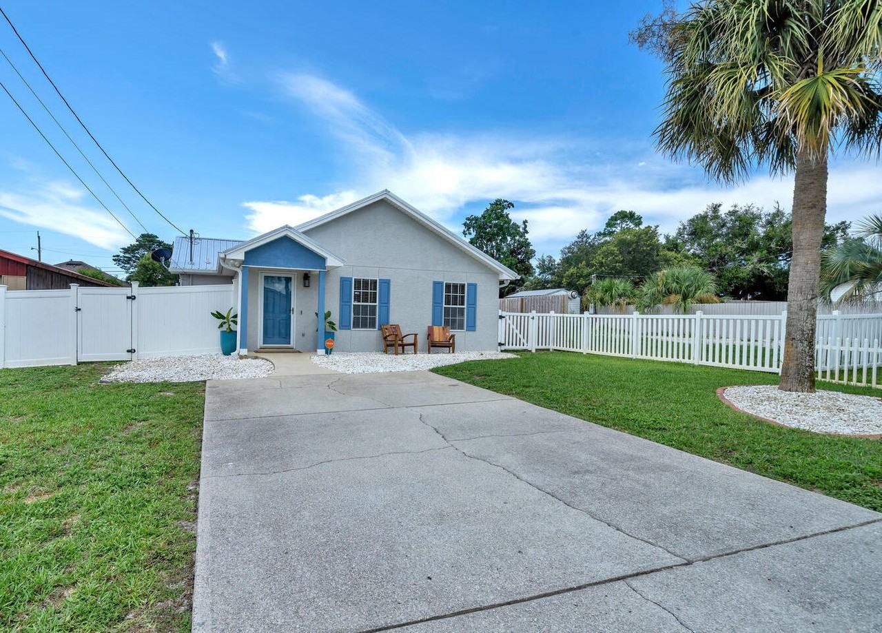 PREFER 1 YEAR LEASE, BUT WILLING TO DO A 6 MONTH LEASE. Unfurnished. WALK TO THE BEACH! Beautiful, comfortable, light and bright single family home walking distance to public beach access 87. This home has 2 spacious bedrooms each with walk in closets, 2 full bathrooms both with newer vanities & tub/shower combo's. BOASTING ALL HARD SURFACE FLOORING! Brand new refrigerator included for tenant use. There's a ton of cabinet storage and electric stove/oven. Separate indoor laundry room with washer and dryer included. Nest thermostat makes for easy temperature control and every exterior door has a keyless entry pad so no more keeping track of an actual key. The fully fenced private backyard features a covered patio, market lights and a fire pit. Live in the calm west-end of PCB just a few streets from the beach. Only a 0.4 mile stroll, bike, or drive down to Beach access 87 you'll find the "World's Most Beautiful Beaches" and sugar-white sands of the Gulf of Mexico! 4.2 miles from 30A/Rosemary Beach on one side of the house, Pier park just a couple miles down on the other side! 21 mi to Ascension Sacred Heart!