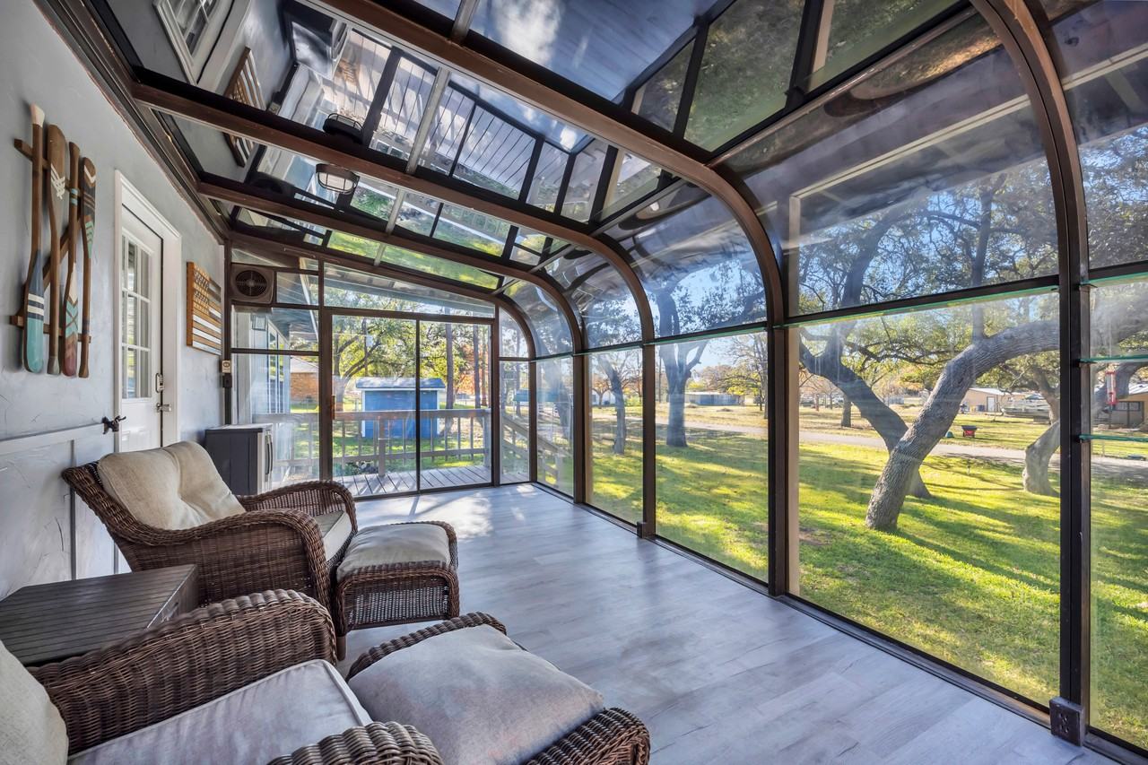 Welcome to your cozy, quiet, and comfortable home away from home! This newly remodeled (2024), fully furnished, and move-in ready 2BR/2BA house near the water is perfect for those seeking a serene and friendly environment on lake LBJ in the beautiful Texas Hill Country. Nested in Kingsland, TX on Lake LBJ, it feels secluded while being minutes from nearby hospitals and attractions, and a nice 45-to-90-minute drive to Fredericksburg, Bee Cave, Austin, and San Antonio Texas. Settle into the home with a large and private driveway on a secluded near half acre of land. The open and functional home layout includes a full kitchen opening into the living/dining area and includes a Master ensuite with a King bed, a secondary ensuite with sturdy Twin XL over Queen bunk bed - both rooms with shades/blackout curtains and plenty of closet/storage space. Start your day with a cup or two of coffee (from the coffee bar) while sitting in the front porch Sunroom watching the birds/nature, and enjoy evenings grilling (propane) on the large back patio. The home is equipped with high-speed Wi-Fi, a widescreen computer monitor (with hookups), adjustable/mobile computer desk and end tables, and 3 TVs (smart/firesticks) for your favorite streaming subscriptions. This property offers a blend of comfort and convenience, making it ideal for various lifestyles. Whether you're here for work or travel (calling all traveling nurses, remote working professionals, winter Texans, and the like), or just to enjoy the serene lakeside and hill country views, this charming house is the perfect place to call home.