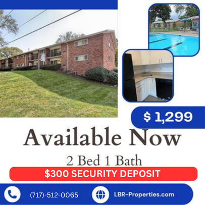$300 SECURITY DEPOSIT SPECIAL! | $25 APPLICATION FEE LBR Properties has a beautiful 1-bedroom apartment in Harrisburg available now! Stress Free Living int 2 bedroom 1 bath Condo. Fresh paint, new cabinets, granite counter tops, new vanity and toilet. HOA fee is included! Includes Water, sewer, trash, heat, gas for cooking, roof, windows,exterior, lawn care, and Hvac repairs. Amenities include a pool, fitness center, playground and onsite laundry. Pets permitted for additionally monthly fee, with breed and weight restrictions. *Application Requirements - 550 Or Above Credit - Landlord Reference - Employer Income Verification *Unpaid eviction(s) and/or judgement may disqualify the application For serious inquiries, please complete an application online at: lbr-properties. com Feel free to call us with any questions 717-512-0065 Lease Terms 12 or 18 months