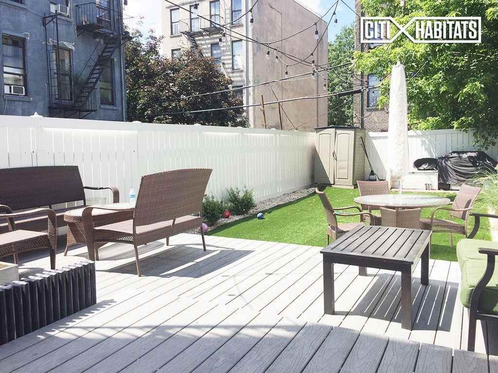 NO FEE*open house is by appointment only, please schedule an appointment for open house viewings to see the unitAvailable for July 1 move in!Beautiful sun drenched two bedroom apartment, located on a quiet tree lined block of Stuyvesant Heights.The 880 sq ft private access backyard is fully furnished and also includes a wooden deck, fire pit, and grill as shown in the photos, a great spot for barbecues and outdoor lounging. Both bedrooms are queen-sized and have windows that allow tons of natural light to spill in to the apartment throughout the day. The kitchen includes stainless steel appliances, large side by side refrigerator with ice maker and water filter, stainless steel stove and microwave. The bathroom is also recently renovated with 9 head rainfall shower and decorative tiling throughout.Large backyard with grill and furnitureRenovated kitchen and bathroomLarge bedrooms with tons of additional storage spaceHardwood floorsCeiling fans in all rooms