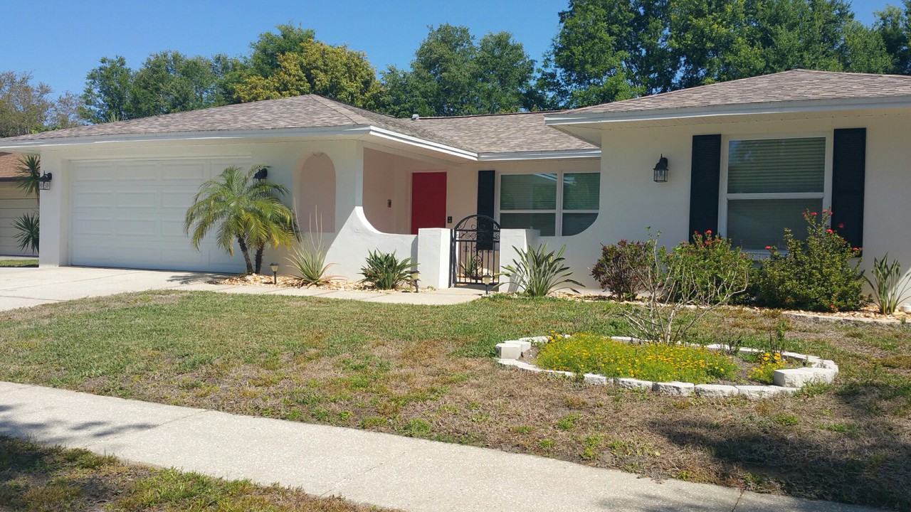 Call Lynne for info: 727-542-9576. ** AVAIL 7-12 months ONLY: July 2019 - JUNE 2020** STUNNING 3BR/2.5 Ba split plan POOL HOME in Palm Harbor's sought-after Dove Hollow! (Sorry, NO DOGS). CHEF'S DREAM KITCHEN no expense spared in this high end renovation including top of the line SS appliances, solid maple soft-close cabinetry, gleaming granite counters - all surrounded by counter-to-ceiling high-end designer tile with listello and border accents, expansive granite b'fast bar opening to inviting Family Rm. Gorgeous ceramic tile & wood laminate flooring throughout - NO CARPETING! 2.5 Ba, all beautifully renovated - maple cabinetry, granite counters, and floor to ceiling tiles. Hall ba has 2 sinks and jetted garden tub; MasBa has beautifully tiled walk in shower with built-in shelves. Kit./LR/DR/Fam Rm flooring is a rich neutral ceramic tile, and all 3 BR's have quality wood laminate. NO CARPET anywhere! Charming iron-gated front courtyard entry adds privacy and a nice place to arrange potted plants and flowers. Pool and lanai can be accessed from Fam Rm, LR, BR2. You'll love the mature landscaping in the private, tranquil, fully fenced back yard, which incl a FIREPIT, storage shed, and 2 cisterns. Prof'ly managed by BHHS FL Properties. Rent incl pool maint; lawn & ext. pest control & fertilizing. Owner will consider a cat or small dog. ** AVAIL. JULY 2019 thru JUNE 2020 ONLY ** NO dogs; owner will consider a cat.