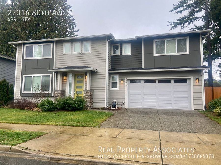 STUNNING 4 bed/2.5 bathroom home, located in desirable Edmonds School District! Open concept spacious main floor. Living room boasts gas fireplace, Supreme kitchen with stainless steel appliances, massive center island great for entertaining. Foyer with custom built ins, 1/2 bath and walk out to fully fenced backyard complete this floor. Upper floor boasts 4 bedrooms, including master en-suite and walk in closet. Another full bath and laundry complete this level. Things I love: ***On demand hot water tank ***AIR CONDITIONING ***EV Charger ***Fully Fenced in yard ***Well though out floor plan ***Spacious and welcoming! *** Air Scrubber Tenants are responsible to maintain landscaping and utilities. -To Schedule a Tour Link: https showmojo com l 17486f4078 -$45 application fee per adult -Renter’s legal liability Insurance required and part of Benefit Package ($19.95 monthly) -For questions please call or text: (206) 577-0589 -Professionally Managed by Real Property Associates -See additional listings at: https www rentseattle com -Application Criteria: https www rentseattle com RPA-Application-Criteria pdf