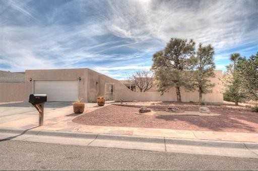 This is an amazing home with two living areas, snack bar and island in the kitchen and exercise/hobby room. Large master bedroom with full bath, jetted tub, double sinks and 11 x 11 closet. Front courtyard, new stucco in 2012 and huge covered back patio. Separate rooms with separate entrance is perfect for roommates. Call or email today! 505-823-2222 or Mail@RockSolidRealtors.com.