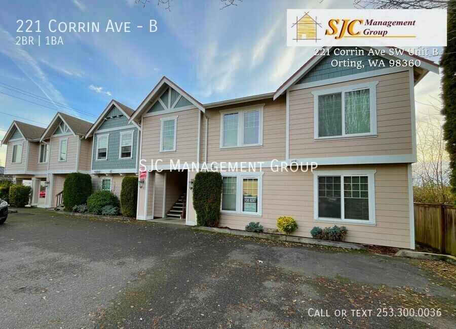Well-kept 2 bedroom/1 bath ground floor apartment in the heart of downtown Orting. Walk to the post office, restaurants, shopping, parks, medical clinics and more! Enjoy the beautiful views of Mt. Rainier throughout the town. The welcoming living area features an open floor plan that easily accommodates a variety of furniture layouts. The kitchen is equipped with a refrigerator, stove, and dishwasher. Both bedrooms are nicely sized, offering comfortable living space. A convenient stackable washer and dryer are included. Enjoy the outdoors on the small patio, perfect for your furniture and grill. For more information or to set up a viewing please contact the leasing team at SJC Management Group today! Small pets [breed and size restrictions may apply] are considered, pet screening required. Approved pets will incur a pet mitigation fee (between $150 and $350) at move-in + a monthly pet fee of $35-$75, max two pets. Please note showings can be scheduled online at any time. After hours or weekends, showings must be scheduled and confirmed by our staff before the end of the business day. Our business hours are Monday-Friday from 9 am to 5 pm. We are closed for all major holidays. ADDITIONAL TERMS: Required $85 at move in and additional $35 per month Resident Benefit Package that offers an array of advantages. With this package, you'll enjoy convenient benefits to enhance your renting experience. UTILITIES: Garbage paid by landlord. All other utilities paid by tenant DEPOSIT REQUIRED: $1700