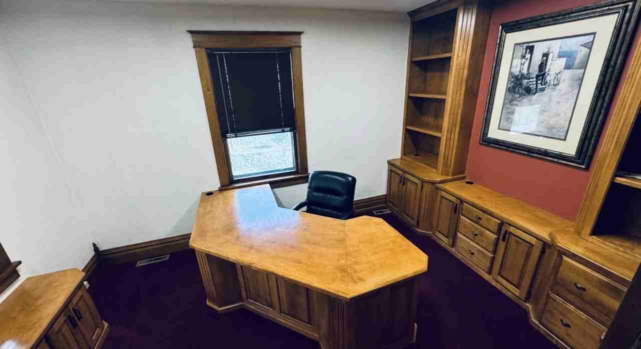 Beautiful office space with built-in desk and cabinets. Off street parking in a private parking lot, two conference rooms, shared kitchen with refrigerator/freezer, microwave, and water cooler. Owner pays utilities. Tenant is responsible for their own internet.