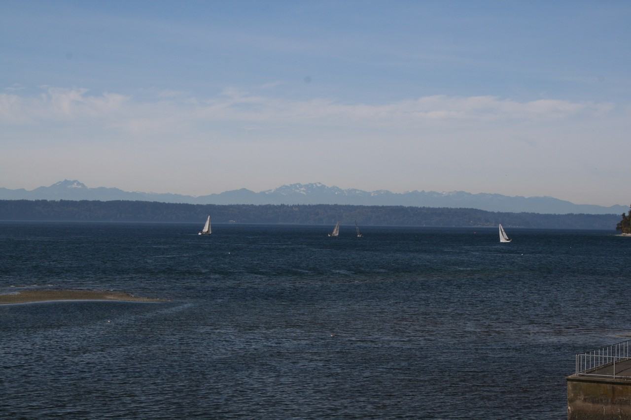 Beautiful View 2 bedroom, 2 bath Condo over the Marina and pier in Des Moines. Sweeping Breath taking view of the Sound, Olympics, Vashion Island, Des Moines Pier and Marina from living room, dining room and Kitchen. Great Sunset views year round. Includes wet bar, gas fire place, large deck, jacuzzi tub in bathroom, Washer and Dryer. Master suite with walk-in closet. Secured 2 parking spaces in Garage with storage room. New Carpet. Corner Unit with windows on 3 sides.