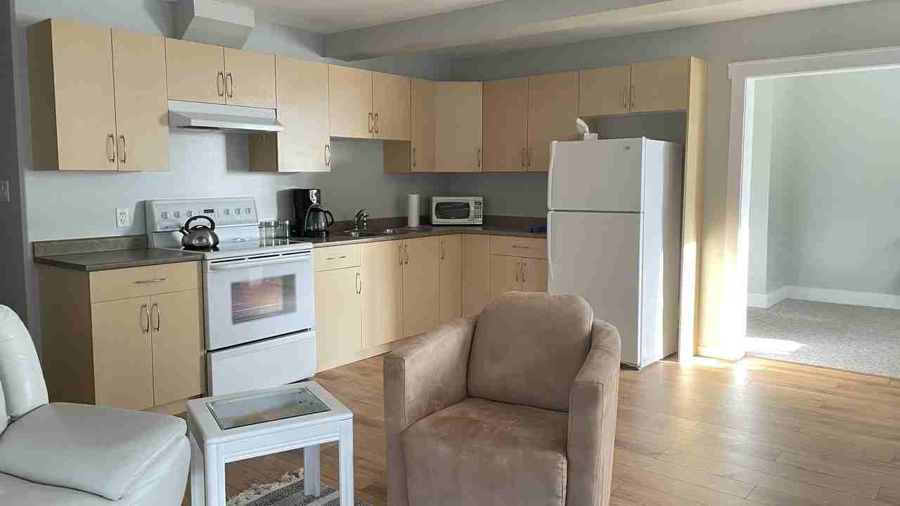 Located at the top of Bear Mountain on a cul-de-sac in a quiet neighbourhood. This suite is fully furnished with the exception of the 2nd bedroom. Seperate entrance , in-suite laundry and parking space . Covered patio at the back with a BBQ.