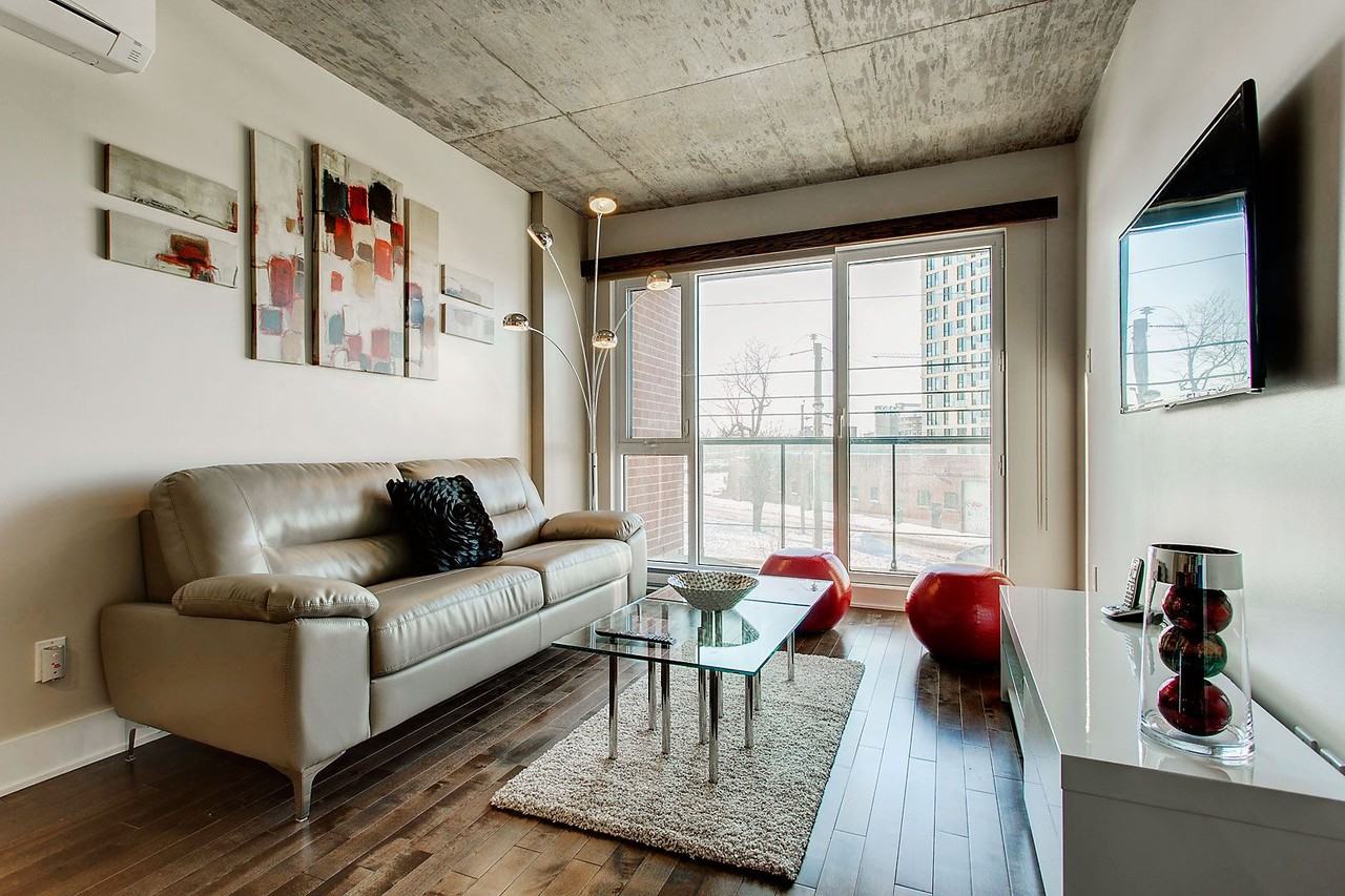 High Ceilings • Outdoor Space • Dishwasher • In-Unit Laundry • Balcony • Hardwood Floor