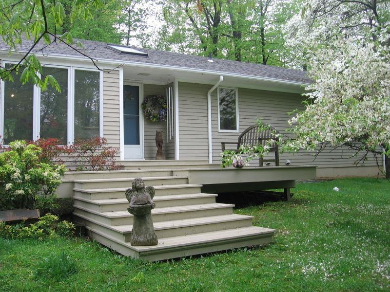 Very open floor plan, cathedral ceilings, stone fireplace, every room has lots of glass, inground pool. Master bedroom with Jacuzzi, walk-in closet, dressing area. Private setting.