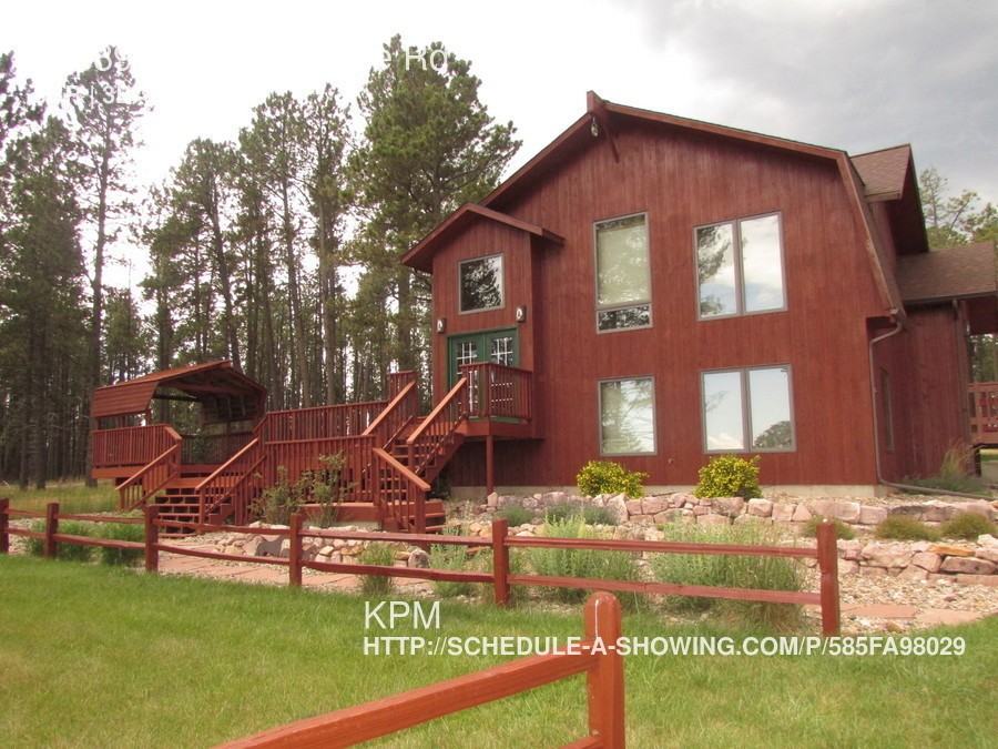 This 3,600 Sq Ft. 3 bedroom, 3 bath log home was built in 1984 and located 12 miles outside of Rapid City towards Nemo. The open main level consists of the kitchen with breakfast nook space, living room with a propane fireplace, dining room, bathroom and master suite (includes private deck, walk-in closet, propane fireplace and luxurious master bath). The lower level houses a large family room, 2 bedrooms, 1 bathroom, office space, laundry and storage. This home is complete with a 3 stall garage with a loft workshop. The property consists of 5 acres bordered by Forest Service Land. The small barn and corral can be used for horses for an additional $100/mo per horse. Other features of this home include well water/septic system, tank-less water heater, propane heat and A/C and a partially fenced yard. This home is pet negotiable with an additional $300/pet deposit and $25/mo pet rent. Tenant is responsible for lawn care, snow removal, electricity and refuse service. To ensure accuracy view this listing on KPM’s website at www.rapid-city-rentals.com. Cats Allowed Dogs Allowed Pet Negotiable Potential Horse Property