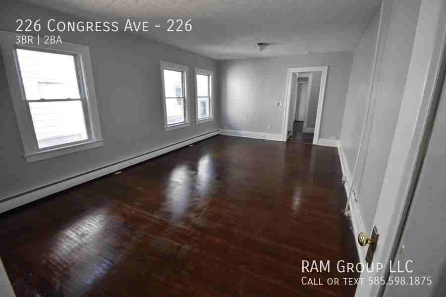 This apartment unit is in a townhouse style house, is 3 Bedroom/ 1.5 Bathroom is available to rent for $1400. This newly remodeled house has newer fixtures, newer flooring through-out, and more. This spacious home is perfect for entertaining with large living room, and enclosed back porch. This home is in walking distance from University of Rochester, Genesse Valley Park, shops, and U of R bus stops. * First month rent ($1400) + Security Deposit ($1400) due at lease signing.