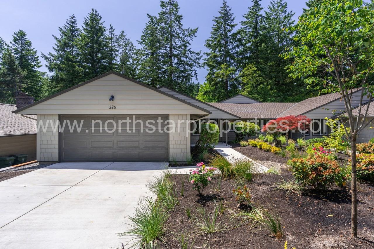 This is a beautifully remodeled duplex located in the Mountain Park area of Lake Oswego. Enjoy access to the Mt. Park Recreation Center, as well as the many trails this lovely area has to offer. Just a few minutes to great shopping and schools. Renovations include the furnace, air conditioning, floors, walls, windows, kitchen and bathrooms. This is a beautiful setting with a private fenced backyard, close to restaurants and shopping. There is a two car garage and new landscaping with an automatic sprinkler. As you go into the property you will notice the wide-open spacious kitchen that has a beautiful island and fine finishes. This leads to the dining area and the vaulted living room. The living room has a gas fireplace and a sliding glass door to the large entertaining patio. Going the opposite way from the kitchen is a hallway that leads to a laundry room and a full bathroom with a tub shower. The primary room has its own bathroom with a shower and quartz finishes, this room also has a sliding glass door to the porch. There are two additional bedrooms off of the main hallway, one looks to the side yard and the other to the front yard. No smoking/vaping of any kind allowed. SCHOOLS: Oak Creek Elementary Lake Oswego Junior High Lake Oswego High School PETS: 1 dog negotiable Please refer to our website listing for an accurate reflection of amenities reported by the owner: https northstarproperties com portland-properties North Star requires proof of insurance of $1M (one million dollars) before move in. An approved application does not constitute a contract or lease agreement with the management company or homeowner. Please see our website for information on application requirements.