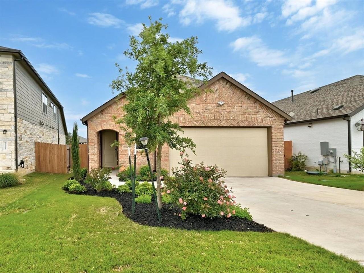 This spacious single-story rental in the sought-after Tessera neighborhood near Lake Travis offers a comfortable and stylish living experience. With 3 bedrooms and 2 full baths, it features a generous layout with high ceilings, creating an inviting and open atmosphere perfect for renters looking for space and convenience. Upon entering, you're greeted by a cozy living room featuring a corner fireplace and modern luxury vinyl plank flooring that flows seamlessly into the well-equipped kitchen and dining area. The kitchen delights with a breakfast bar, ample shaker-style cabinetry for storage, quartz countertops, stainless steel appliances, and a tile backsplash—ideal for cooking and entertaining friends. The dining area provides a charming spot with its intimate setting and a cozy window seat, offering a relaxing place to enjoy your morning coffee or unwind after a busy day. The primary bedroom is your own quiet escape with its large bay window and abundant natural light. The ensuite bathroom includes a dual vanity, soaking tub, separate shower, and a spacious walk-in closet. Throughout the home, neutral-toned walls and expansive ceilings enhance the spacious feel, creating a comfortable backdrop for personalization. Step outside to the elevated patio and enjoy scenic views of the surrounding area, providing a great space for outdoor relaxation or hosting gatherings. The meticulously landscaped backyard features a variety of blooming plants and flowers, offering a peaceful outdoor oasis. Enjoy the community amenities of Tessera, including parks, golf courses, pools, and trails, providing ample opportunities for outdoor activities and leisure. Don't miss the chance to lease this exceptional residence!