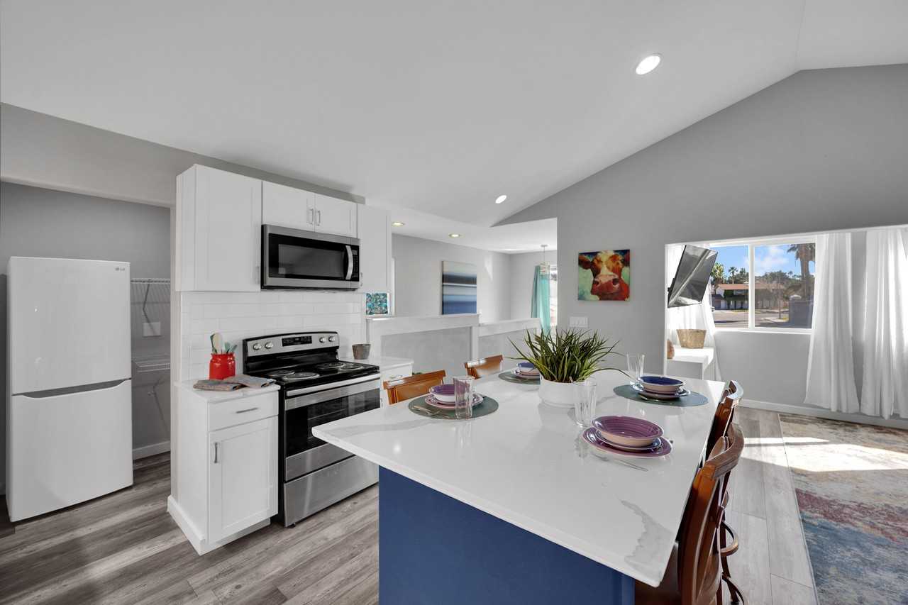 Beautifully remodeled and fully furnished 2BR/1BA guest house with loft and private balcony in the highly desirable Green Valley North neighborhood. Enjoy your own private entrance, light-filled living spaces, and a peaceful retreat just minutes from shopping, dining, and everyday conveniences. This recently remodeled guest house offers just under 1,000 square feet of comfortable, thoughtfully designed living space. The home has its own private entrance and is located up one flight of stairs, with most of the living space situated above the garage, creating a comfortable and private retreat separate from the main home below. Inside, you’ll find an open and welcoming floor plan featuring a spacious great room and a fully stocked kitchen with a generous pantry — perfect for everyday living. The front bedroom features a plush and inviting double bed. Down the hall is the bathroom with a corner shower and ample storage space, and at the end of the hallway you’ll find the primary bedroom with a king bed, walk-in closet, and a dedicated workspace with desk and office chair — ideal for catching up on work or working remotely. Sliding glass doors from the primary bedroom open to a private balcony, offering a quiet outdoor space to relax. From the primary bedroom, a spiral staircase leads to the large loft, providing versatile bonus space ideal for a reading room, lounge area, or place to unwind, along with additional storage space. Both bedrooms and the bathroom are stocked with fresh linens and towels to make settling in easy. Conveniently located just 1–2 miles from groceries, shopping, coffee shops, restaurants, and a movie theater, you’ll enjoy peaceful surroundings while remaining close to everyday essentials. This home is well suited for traveling professionals, corporate housing, or mid-term stays, and works well for singles, couples, or traveling pairs. Located in a quiet residential neighborhood that offers a peaceful living environment. Rent includes high-speed internet, landscaping, garbage and recycling service, too! Nearby Attractions: The Strip | 8 miles Allegiant Stadium (Las Vegas Raiders!) | 9 miles T-Mobile Stadium (Vegas Golden Knights!) | 9 miles Ethel M Chocolate Factory | 1 mile Lake Mead | 23 miles McCarran Airport | 5 miles Flexible Lease Options: Rent (includes high speed internet, landscaping, garbage and recycling services): 1 - 2 months: $2595/mo 3 - 6 months: $2395/mo 7 - 11 months: $2195/mo 12+ months: $1995/mo +$125/mo for flat rate utilities: gas, electricity, water, and sewer services Helpful Information: Starter set of consumables are provided to make your transition home seamless and easy Not suitable for young children nor infants No smoking and no vaping of any kind This property has a pool and spa onsite; however, neither are available for use Income Verification (2.5x/monthly rent), 680+ Credit Score, Background and Criminal Check, and References Required Move In Costs: First Month’s Rent + Flat Fee Utilities Refundable Security Deposit: 1.5x the rent Move Out Cleaning Fee: $295