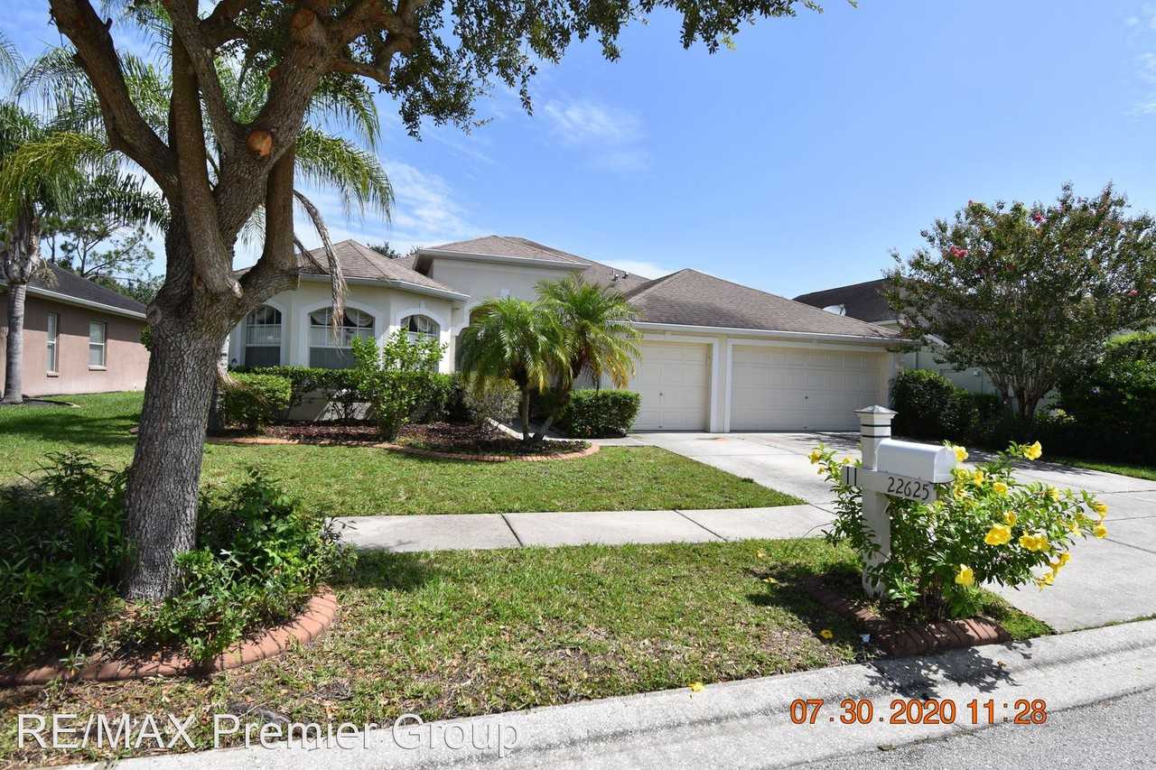 22625 Eagles Watch - This has 2660 sq. ft of living space, 4 Bedroom plus Den, 3 Full Bathroom and 3 car Garage. This home features many upgrades. The exterior features lush landscaping, fully fenced backyard and a large screened and tiled Lanai. Some interior features include Den with double door entry, hardwood floors in all living areas including den, formal dining room and Master bedroom with tray ceiling. The kitchen has upgraded granite countertops, breakfast bar and breakfast nook. The master suite is large and has a walk in closet with built-in organizers and a master bath with custom tile, double vanities, enclosed toilet, large walk in shower and Jacuzzi garden tub. Custom window treatment and blinds in all rooms.
