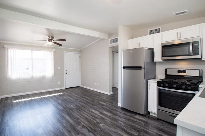 Stunning remodeled One bedroom apartment home available for rent in Buckeye! Boasting modern design with all new vinyl flooring throughout. Open kitchen with stainless steel refrigerator, flat top stove and built in microwave. Single level community so no neighbors upstairs! Tenant responsible for all utilities including water, gas and electric. Pets on approval with $250.00 non-refundable pet fee per pet; max two. 1.5% administration / service fee and city rental tax added to rent monthly. Renter's Insurance Required. FDIC REDUCTION AVAILABLE ( separate qualification required ) Application fee: $50.00 per adult Holding Deposit: $250.00 (applied towards move in costs) Contact us to schedule a showing.