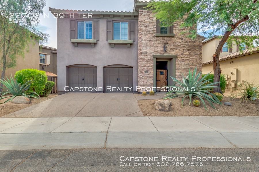 Gorgeous home located in the highly sought out Aviano subdivision in Desert Ridge. This 5 bedrooms 3.5 bathroom home is loaded with ugrades! Walking in you will be greeted by the private courtyard with spool. Upon walking into the home you will see the modern and easy to maintain concrete flooring throughout the main living spaces. You will love cooking in this spacious gourmet kitchen with upgraded kitchen cabinets granite kitchen countertops and large kitchen island with stainless steel appliances. Other highlights include living room fireplace, den, large loft area perfect for hanging out with guests or family. Beautiful master suite with a separate sitting area, large walk-in closets, and master bath. Room for all the toys in this 3 car garage! Brand new washer/dryer brand new water heater and water softener! Located within walking distance to Wildfire Elementary School. Available for immediate move in! Pets require Lessor approval - review pet policy prior to applying 3 Car Garage Biking/Walking Path Carpet Clubhouse Community Children's Payground Community Pool Community Spa Concrete Flooring Covered Patio Desert Landscaping Full Master Bedroom Granite Counter Tops Kitchen Island Loft Private Courtyard Private Spa Range Oven/Gas Tile Flooring Vaulted Ceilings Walk In Master Bedroom Closet Walk In Pantry Washer And Dryer Workout Facility