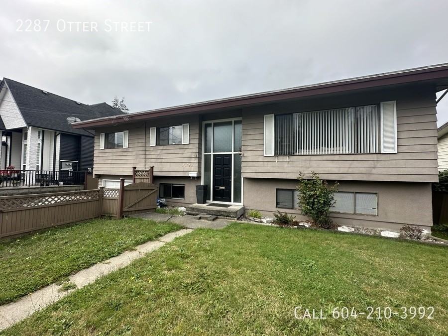 Pets: w/Approval No Smoking Utilities: Not Included Available: October 1st One Year Lease Security Deposit: Half Month Rent Pet Deposit: Half Month Rent Family home available now. Located in a nice neighbourhood, with large fenced backyard. 3 bedrooms located upstairs, with one bedroom and den downstairs. Separate kitchen downstairs, perfect for your extended family. Basement has a gas fireplace for those cold nights and working a/c through out the home, for those hot summers. Nearby Mill Lake and Sevenoaks mall. Easy access to Clearbrook exit to Highway 1. Please call Ace Property Management at 604-853-2718- Ext-1 to book a viewing. Reference the address: “2287 Otter St"