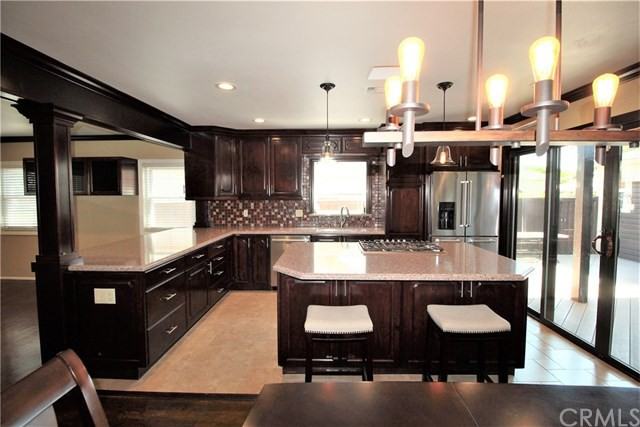 Room for everyone! This impeccably remodeled home features a large, open concept kitchen with high-end appliances and bar stool seating for 6, plus a formal dining space that flows nicely to the living room. Entertain with plenty of space outside under the covered deck with fire pit, or bonus detached room with a built-in bar, both leading out towards the recently resurfaced swimming pool and spa! Beautiful and modern bathrooms, nice-sized bedrooms, and inside laundry round out this exceptional home. Other features include hardwood floors, alarm, keyless entry doors, new light fixtures.
