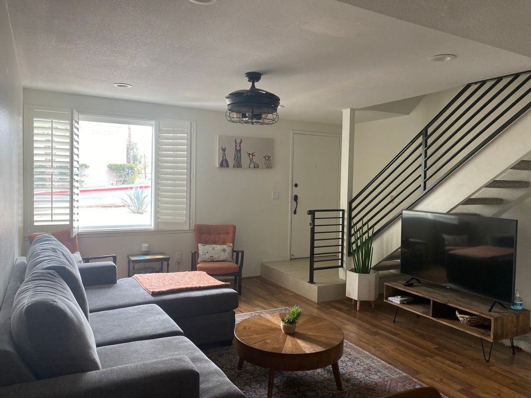Welcome to your serene oasis in the heart of Palm Springs, California! This charming end-unit condo is perfectly situated within a gated community, offering both privacy and convenience just moments away from downtown’s vibrant array of shops, restaurants, and entertainment options. Step inside and be greeted by a cozy, inviting atmosphere, with the property coming fully furnished for your immediate enjoyment. The tasteful decor blends modern comfort with a touch of desert charm, making it the perfect retreat for relaxation and leisure. The unit features an open-concept living space that seamlessly connects the living room to the dining area and kitchen, providing ample room for entertaining friends or enjoying a quiet evening at home. Large windows allow abundant natural light to fill the space, creating a warm and inviting ambiance. Step outside onto your small private patio, ideal for sipping morning coffee or unwinding under the stars in the evening. This d...