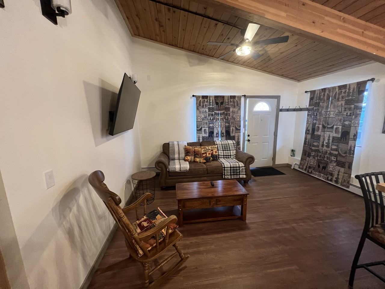 Come live the Log Cabin Alaskan Experience in this brand new renovation! Very spacious, with high ceilings and tons of natural light. The cabin is within walking distance to beautiful parks, bike trails, and fun restaurants. Airport is only 5 minutes away and local hospitals 10 minutes away. Outfitted with all the modern amenities and a fully stocked kitchen including an Instapot and an Airfryer so you can make those quick meals on the go! Master bedroom has a queen size bed and the other has 2 twin size beds, both have ample closet space and large dressers for storage. 2 full sized bathrooms, one with a full size tub and the other with a LED Bluetooth mirror so you can listen to your morning podcast while getting ready! 2 parking spots right in front of the house and a huge backyard to enjoy those long Alaskan summer days.