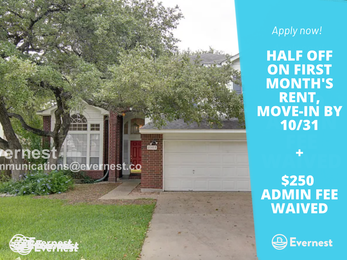 HALF OFF ON FIRST MONTH'S RENT, MOVE-IN BY 10/31 Discover this charming 3 bed, 3 bath, 1,860 sq. ft home in the heart of Round Rock. Features include: Bright, eat in kitchen with granite counters and ample cabinetry Rich, hard surface flooring on the main level with carpeting in the bedrooms. Spacious master suite with dual vanities, separate tub/shower and walk in closet This property boasts a 15x15 sq/ft sunroom perfect for family gatherings, sunlit meals, or relaxing with the security of keeping the bugs out. Located within the Round Rock school district, there are many great schools within a close proximity Available lease length, 12, 14, 15, & 16 month lease options Deposits and fees: Please contact for details Ready for move in? Contact us today! Pets: Yes. Residents are responsible for all utilities. Application; administration and additional fees may apply Pet fees and pet rent may apply All residents will be enrolled in Resident Benefits Package (RBP) and the Building Protection Plan which includes credit building, HVAC air filter delivery (for applicable properties), move-in concierge service, on-demand pest pest control, and much more! Contact your leasing agent for more information. A security deposit will be required before signing a lease. The first person to pay the deposit and fees will have the opportunity to move forward with a lease. You must be approved to pay the deposit and fees. Beware of scammers! Please contact Evernest Property Management at **** before leasing. Evernest will never request you to pay with Cash App, Zelle, Facebook, or any third party money transfer system. This property allows self guided viewing without an appointment. Contact for details.
