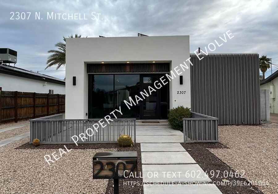 This show-stopping Central Phoenix smart-home has 3 bedrooms and 2 bathrooms and is ready for immediate move-in! Commercial front glass, custom metal work, and concrete flooring throughout with modern canned and pendant light fixtures. You'll love this incredibly chic eat-in kitchen that boasts waterfall quartz counter-tops, stainless-steel appliances, pantry, and bar-style seating. An entertainer's dream! The large primary suite has TWO walk-in closets with built-in shelving and an ensuite bathroom with dual sinks and gorgeous upgrades, and private access to the huge backyard with a covered patio and low-maintenance gravel and turf landscaping, as well as a detached 1.5-car garage. Take advantage of living in the lively but quiet historic Coronado district! Easy access to all downtown sporting and art events plus endless dining options. DO NOT MISS THIS ONE!! *One cat accepted with applicable pet deposits and fees, Sorry, no dogs. Schedule a self-guided tour today at www rpmevolve com Phone: 602-497-0462 *Equal opportunity housing Dryer Garage Washer