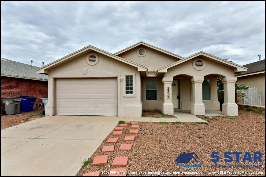 ZMP94011949 - Radiant sunlight filters through the expansive front window, illuminating four generous bedrooms and two baths across this recently refreshed single-story home. The living room\'s cozy fireplace and crisp new flooring invite relaxation, while the kitchenlined with warm wood cabinets and practical tile flooringsets the stage for casual gatherings. Sliding doors off the dining area lead to an open backyard framed by a stone wall, perfect for weekend barbecues. Located in a tranquil, well?established neighborhood, this home places you steps from Tierra de Luces and Los Praderas shopping centers, ensuring errands flow seamlessly. Hueco Tanks State Historic Site and Ascarate Park are reachable within a short drive, offering outdoor escapes. Enjoy easy access to The Hospitals of Providence and a roughly 20 minute commute to Fort Bliss. Deposit?Free Renting service to Obligo qualified renters, fees may apply For Showings information and availability, please call at 915-320-7027 By: 5 Star Property Management EL PASO Texas Rentals EL PASO Property Management Property Management in EL PASO *Important: Information is deemed reliable but not guaranteed. All information is submitted subject to errors, omissions, change of price before the lease, or withdrawal without notice.