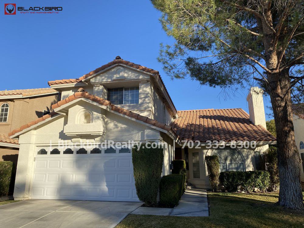 Two story house with a bedroom and full bathroom downstairs and private pool in your backyard! Two spacious living areas downstairs and dining room off the kitchen. Two bedrooms upstairs with jack and jill bathroom, down the hall from master bedroom and master bathroom. This home is located in the heart of desert shores! Rent includes pool service and landscape service and sewer and trash. Tenant pays rent, NV Energy bill, SW Gas bill, and Las Vegas Valley Water bill. Apply on our website at https apply rentscreener com blackbird-realty