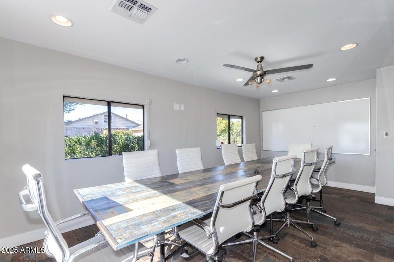 Property Status: Active Elevate & Impress your customers - RENT this Contemporary Office by the Biltmore. Talk about Good Vibes! Do you have a REALTY TEAM, WHOLESALING GROUP, INSURANCE GROUP, etc with 3-10 people, who need a fun and dynamic environment to create and elevate in?? Do you have a Law Firm, or other Professional Services company, that wants a trendy yet professional environment for your customers and team? Need plenty of Parking for customers and team members? And a Gorgeous Big Conference Room that helps you close deals? Want a Stand-Alone Building with its own KITCHEN and PRIVATE BATHROOM? No more sharing with the odd people down the hallway.... This is the Perfect Office Environment for a small business to flourish in. FULL Kitchen and Bath with Shower 12 Dedicated Parking Spaces Large Conference Room, Big Bullpen/Reception area, and 2 additional Offices Office comes partly Furnished - just add your finishing touches. 1 60" LG Flat Panel TV; plus 1 55" LG Flat Panel TV Wood Plank Conference Room Table; matching credenza and 4 matching tables Stainless Steel Refrigerator, Dishwasher, & Microwave, plus Cooktop Covered Back Patio with Misters & Pavers Roll-down exterior Security Blinds Security system & telephone system can be utilized Signage can be added to showcase your Business! Approx. 1100 s.f. Office Space Lot Size: 7,544 s.f. Office Phone: (602) 717-5115 Copyright © 2026 Arizona Regional Multiple Listing Service, Inc. All rights reserved. All information provided by the listing agent/broker is deemed reliable but is not guaranteed and should be independently verified.