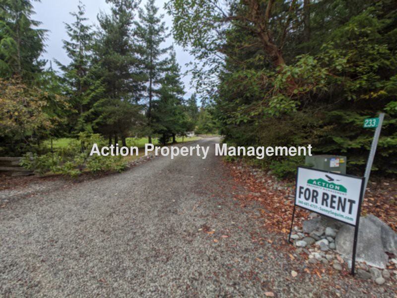 *Application pending* This 2 bedroom, 3 bath home sits on 5 private, landscaped acres at the end of East Sequim Bay Road. There are two bedroom suites, each with their own bathrooms, walk-in closets, and sliding glass doors to the back deck. There's a 3rd full bathroom and den/office. There's an open concept living room and kitchen with vaulted ceilings, a wood stove, kitchen island and closet pantry. Includes a gas range, microwave, and dishwasher. The laundry room has a utility sink and washer and dryer included. There is a detached, double opening, 2-car garage with lots of shelving, and another detached garage with room for extra storage. The house is heated with cadet heaters, a wood stove in the living room, and pellet stove in the master bedroom. This home is on a septic and private well so there's no water or sewer bill, and year-round yard care is included in the rental price. There is beach access via a public park just a short 2 minute drive away. One small dog is possible on a case-by case basis with additional deposit and monthly pet rent. First and last month's rent and a $1,900 security deposit are required upfront. We are looking for responsible, long-term tenants with good rental references or mortgage payment history and verified monthly income of around $5,700 per month. Married couples can combine income to qualify but single adults need to qualify separately. If you are not already on it, please visit our website at https sunnysequim com for more details. We do not accept co-signers or comprehensive reusable tenant screening reports. Sequim property management by: Action Property Management 720 E Washington St STE 110, Sequim, WA 98382
