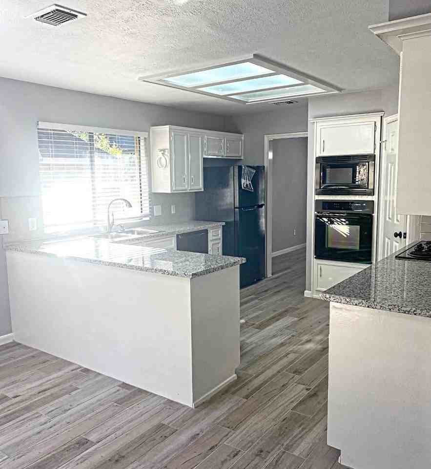 Gorgeous, updated one -story brick home in sought after Hunters Ridge Subdivision! Home features 4 spacious bedrooms and 2 baths, beautiful new ceramic flooring throughout, everything listed was updated in 2022! Beautiful granite counter tops in kitchen & bathrooms! Refrigerator included! White cabinets! Fairly New sinks! lighting, ceiling fans w/ light kit, fixtures! Interior neutral paint throughout! Awesome spacious family room w/wet bar, high ceilings & floor to ceiling brick fireplace w/ built ins! Great views to your nice backyard & patio area! Separate formals off entry way! Spacious Primary bedroom! Secondary bedrooms located @ back of house for added privacy! Both bathrooms recently updated! Front tall shady trees! Detached garage! Pretty curb appeal! Corner lot! Minutes from the acclaimed Bear Branch Elementary school & zoned to Middle & High schools! Ride your bikes to school over the beautiful Kingwood Trails! Close to shopping, & all local amenities! You will love it!