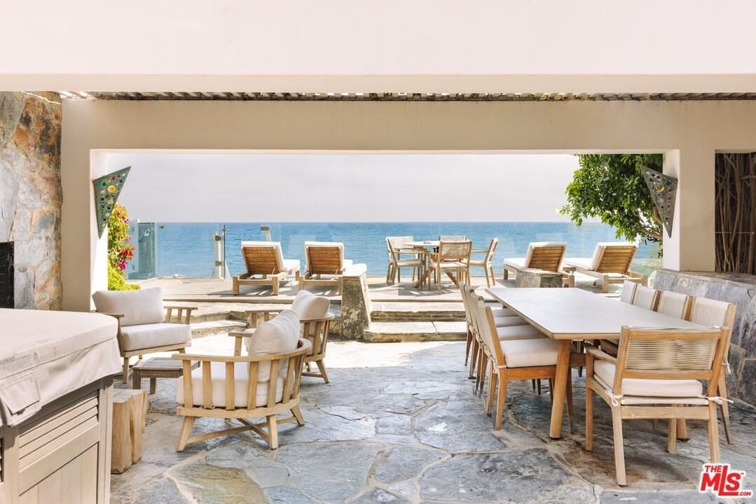 Property Status: Active Bold design and modern features coalesce in this newly remodeled three-story beach house. Located in the guard-gated community of Malibu Colony, this 5 bedroom/5 bath home w/custom stone floors, fabric walls, and hand-selected designer elements. Perfect for grand or casual living, the home offers a custom aquarium entry that flows into a sleek, but inviting formal living room and dining area with raised fireplace and floor-to-ceiling wall of glass that opens to a logia covered entertainer's deck with a BBQ island, multiple seating areas and raised wood sun/viewing deck with direct beach access. Black granite, ocean view gourmet kitchen with custom stainless steel finishes and high-end appliances. Intimate family/media room with granite bar area. Gorgeous, ocean view owner's suite with sitting area, high ceilings, and double spa-like baths, plus a third-floor equipped gym that overlooks the suite. Four additional en-suite bedrooms, two-car garage with guest parking. Summer months rent is $145,000 per month (June - September) Office Phone: (310) 230-5744 Copyright © 2025 TheMLSCLAW. All rights reserved. All information provided by the listing agent/broker is deemed reliable but is not guaranteed and should be independently verified.