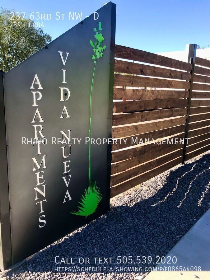 Located in the West Mesa neighborhood, the Vida Nueva Apartments have been fully remodeled and upgraded to refrigerated air. Gated community. Security screens on all units. Great lighting and open walkways. Community BBQ areas and a dog run for our small furry friends! ADT Alarm System included, with the ability to monitor with your smartphone. Closest major intersection is U.S. Rte 66 and Coors. Lavaland Park and Pat Hurley Park are not far. Close businesses, shops, and restaurants have Smith's, Walgreens, Dion's, Jiffy Lube, Freddy's, Golden Pride, and Sharky's Fish & Shrimp. Nearby schools include, Lavaland Elementary, John Adams Middle, and West Mesa High. Please call 505-539-2020 to schedule a viewing! Or press the "Schedule a Showing" button on the property page! Utilities: PNM & NM Gas in resident's name. Residents pay flat rate water $40/mo Pet Policy: No Cats 1 Small Dog allowed 30 lbs or less $300 Pet Fee, nonrefundable $30 Pet Rent/pet Limit 1 Pet Vehicle/Parking Policy: Limit 2 Vehicles Not assigned First come first serve Parking sticker required Laundry: Onsite Community Laundry Please call 505-539-2020 to schedule a viewing! Or press the "Schedule a Showing" button on the property page! Adt Alarm Near Coors & Central None On Site Laundry Refrigerated Air