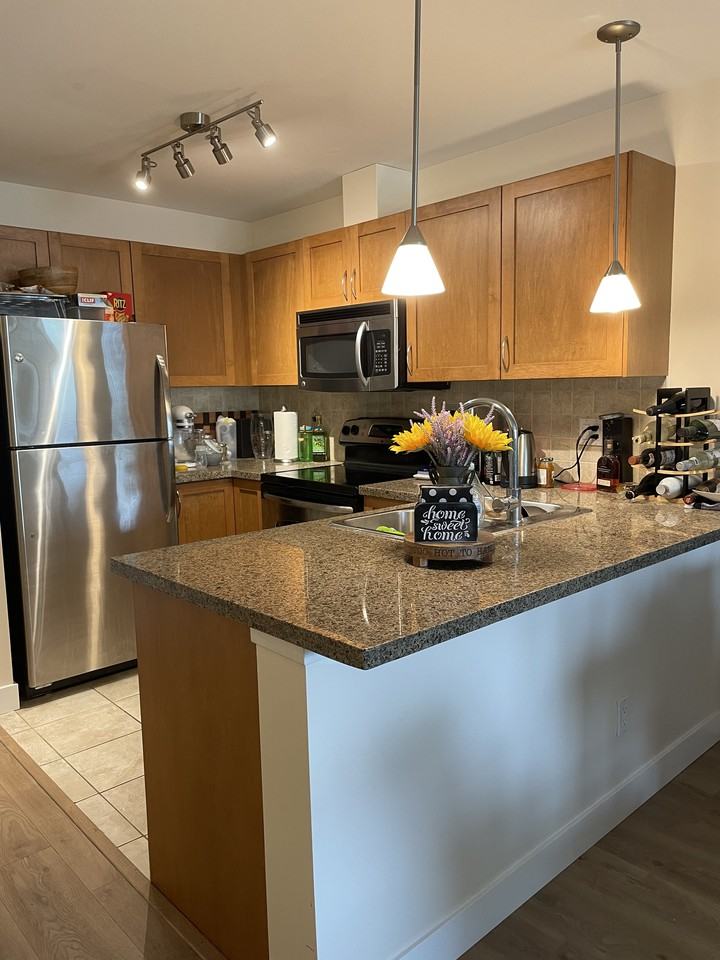 Available: 2 bed 2 bath 847SQ FT TOP floor apartment located in downtown Port Coquitlam Walking distance to grocery stores, Gates Park, restaurants, West Coast Express, new Port Coquitlam Community centre and more! -New laminate floors and paint completed June 2021. -Brand new washer and dryer installed September 2022. -2 balconies for your enjoyment -No locker but has walk-in closet and lots of in-suite storage -No pets allowed. -No smoking Utilities not included. 1 year fixed term. Credit and reference check required. Renters insurance required. Unit available January 1st 2023.