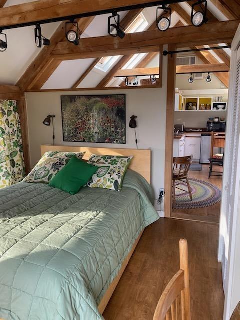 Amazing winter rental facing Brunswick across the river; Bowdoin College, ocean beaches, fishing, kayaking, canoeing and restaurants are all nearby. Love how it is situated, among beautiful gardens and directly on the Androscoggin River. Relax in your three room post and beam cottage, contemporary and antique furniture included in the rental. Newer kitchenette, newer bath. One wonderful bedroom plus a cozy living room with pull-out couch for a guest. Use of a deck, barbecue and picnic table. Just a short walk across the river from historic Brunswick, our cottage is quiet, on the river, and in the garden. Large screen television, WiFi included. Extraordinary queen bed, desk and full bath. We have very extensive gardens on our property, which overlook the river. They include 2 labyrinths, and a prayer wheel garden. In addition, we are situated directly on the public walking path that winds through the woods alongside the river. We also have laundry facilities available. No pets allowed. Available as winter rental from December 1st, 2024 (or immediate) through April 30th, 2025.
