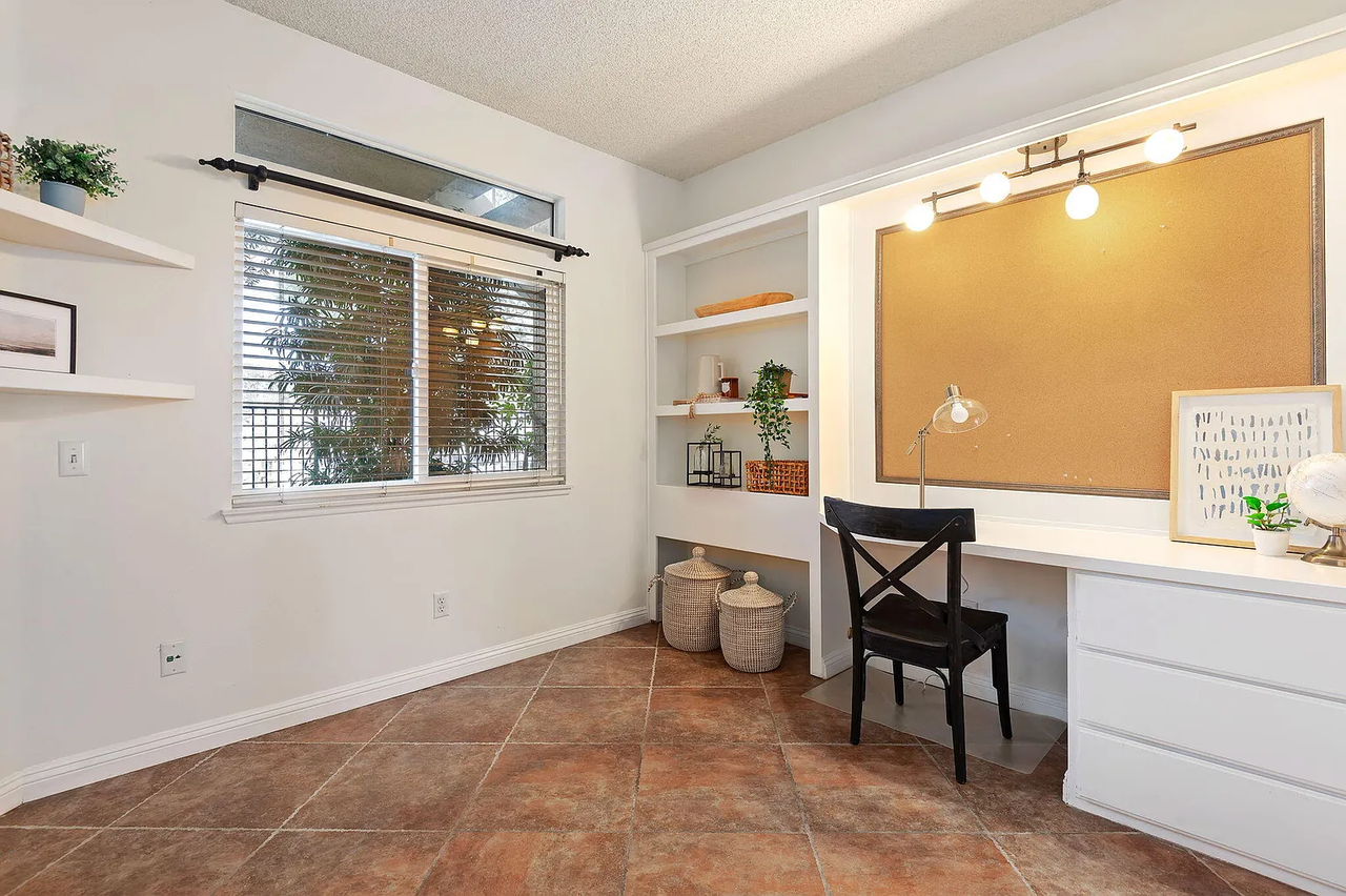 A single-story floor-level unit, nestled in the tranquil corner of the highly coveted Arroyo West community in Valencia Summit. The inviting open concept living room and dining area are inundated with an abundance of natural light and complemented by a charming fireplace, providing a cozy and welcoming atmosphere. Enjoy views of the lush greenery and towering trees of Summit Park, just beyond the gate from the outdoor patio space. The kitchen offers stainless steel appliances, granite countertops and ample cabinet storage. The primary bedroom features en-suite bathroom, while the second bedroom enjoys a beautiful and functional built-in. For added convenience this unit comes with an attached two-car garage with interior access.