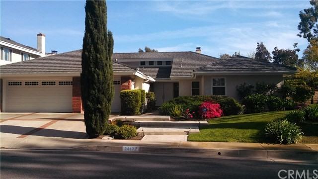 Single level traditional style (salt water) pool home in El Niguel Heights. Live in quiet elegance in this 4 bedroom or 3 bedroom plus office residence. The kitchen features stainless steel appliances, granite counters, and a breakfast nook with a view of the swimming pool. Get cozy next to the fireplace in the den. Wood floor throughout most of the main living areas provides a warm ambiance. An expansive dining room opens to the formal living room, all with a view of the pool and yard. Relax from the stress of the day in the master bath tub. Additionally there is a 3 car garage. The home is located across the street from one of the neighborhood green belts and just down the hill from the main park in the community.
