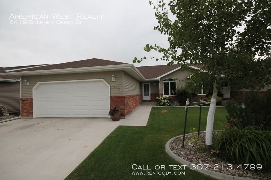 Beautiful townhome in Sulphur Creek Subdivision. Main floor includes an open living room, dining room, kitchen, second bedroom, full bath, and laundry. There is a fireplace in the living room and a sliding glass door that leads to a small deck over-looking the yard with nice views. The basement has a large living room with free-standing gas fireplace, a third bedroom with very big walk-in closet, another full bath, and a really big storage area. There is an attached 2-car garage with opener and a walk-out door that leads to the back yard. Washer and Dryer are included. The lawn is maintained by the Homeowner's Association. No smokers, pets negotiable. Tenants responsible for utilities (This unit is NOT furnished) _____________________ Information presented is deemed reliable, but is not warranted. Interested parties are responsible for conducting their own inspection to confirm the accuracy, completeness, currency, and status of all information before renting any property. _____________________ General requirements: All occupants 18+ must complete an application $30 application fee per person Submit a government-issued picture ID Prove combined income of 3x monthly rent To see our most updated list of rentals or learn more about our screening process, visit the American West Realty and Management website. _____________________ INVESTORS: are you looking for professional property management or an agent that can help you sell or expand your investment portfolio? Contact American West Realty and Management today to learn about our services! Air Conditioning Central Air Ceiling Fan Deck / Porch Garage Heat Forced Air Heat Gas Fireplace Kitchen Dishwasher Kitchen Garbage Disposal Kitchen Microwave Kitchen Refrigerator Kitchen Stove / Oven Parking Assigned Sprinklers Automatic Utility Black Hills Energy Utility City Of Cody (Water, Electric, Sewer, Trash) Views Washer/Dryer In Unit