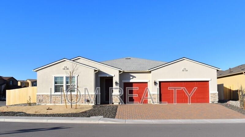 This NEWER 1-story home was built in 2022 and has had only 1 occupant! It is situated on a corner lot in the beautiful Stonebrook Village community in East Spanish Springs. There are mountain views from the front and back yards. This is a very large home with 4 bedrooms, 3 bathrooms, and 2,721 square feet. When you first enter the home you will notice the extra wide entryway and high ceilings. There are 12-15’ high ceilings in all rooms. There are many windows throughout providing lots of natural light. The floors are rich wood-like laminate in the main areas and carpet in the bedrooms. The kitchen has granite countertops, maple cabinets, stainless steel appliances, a brand-new fridge, and a center island with deep double sinks. There is an oversized microwave and a gas stove. Plus, there are 2 pantries! This home has a brand new washer and dryer in the laundry room, central A/C, and a 3-car garage. In the back, there is a covered patio with hand-laid bricks. (The patio has just been extended, too!) RENT DISCOUNT: $2,399 for the first month (discount of $600!) Then, $2,999 per month for months 2-12. Move-in within 15 days of your original showing. One pet is allowed (either a cat or a dog). The pet deposit is $500. All animals must be approved by the owner before approval. Lease qualifications: Credit score 650+, minimum income 2.5 times the rent, credit report, and background checks are performed. Click the blue link “schedule a viewing” for a lockbox code and private viewing. This home is available now, so please set up a viewing soon before it's gone!
