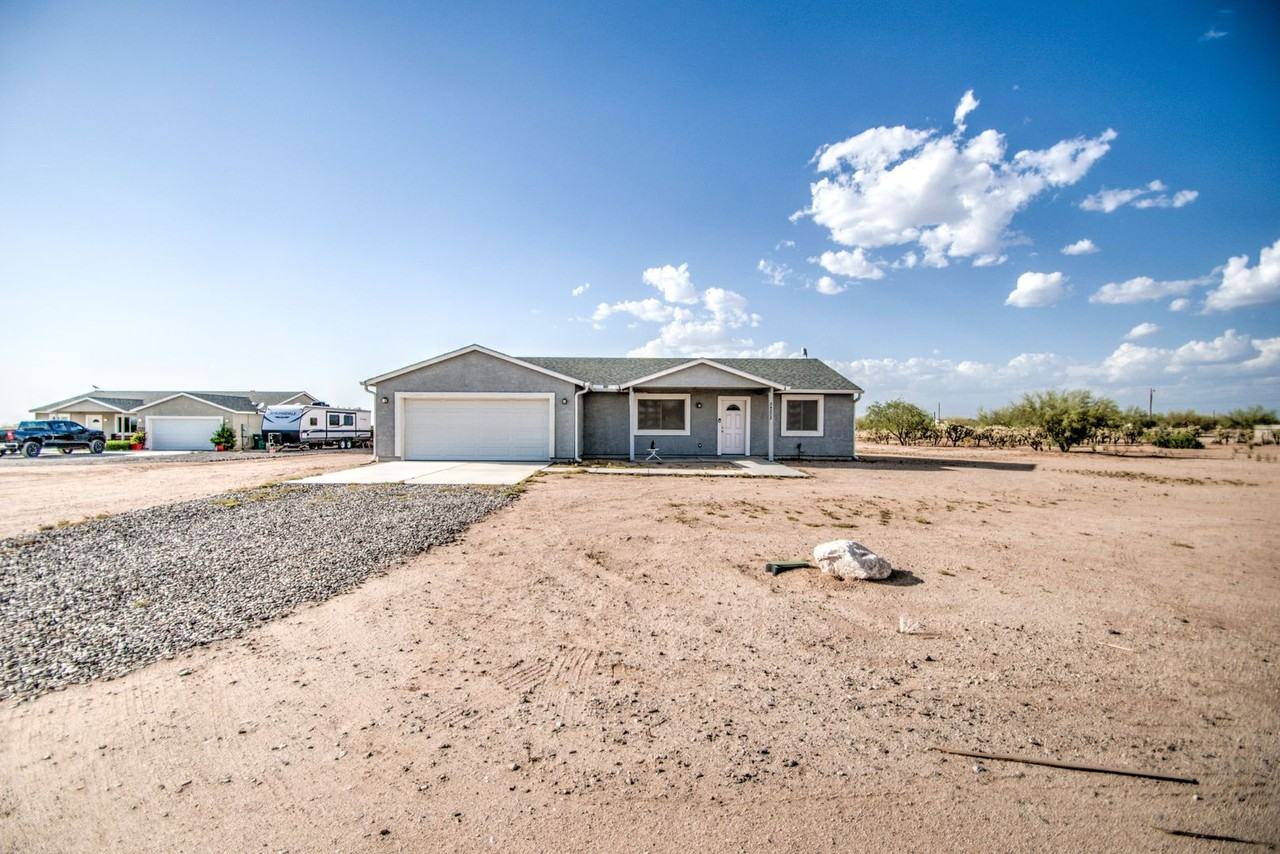 Welcome to the Acre + Lot a 3 bedroom home in South Florence! This beautiful property, located just south east in the charming town of Florence, AZ, boasts a spacious layout with 3 bedrooms and 2 full bathrooms. The home features a split floor plan, providing a perfect balance of privacy and communal living space. The great room style living area is ideal for entertaining or simply relaxing at home. The kitchen is equipped with modern stainless appliances, and the entire home is updated with fresh paint and new flooring. The property also includes a 2 car garage, offering ample storage and parking space. But the real highlight of this home is the expansive lot it sits on. With over an acre of land, there's plenty of room for outdoor activities, gardening, or simply enjoying the Arizona sunshine. This home truly offers a unique blend of comfort, style, and space.