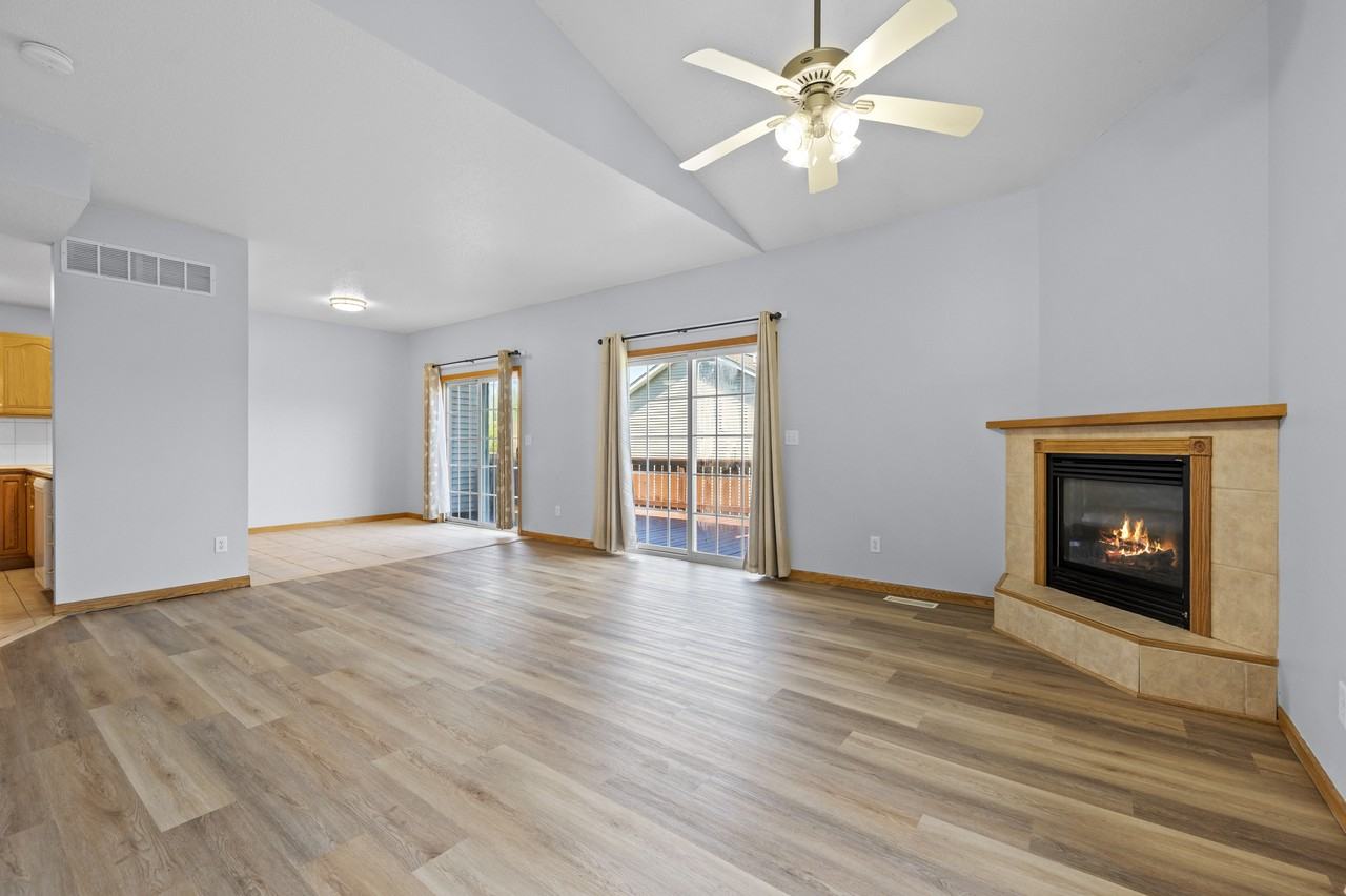 Welcome to 2433 Catskill Court, Iowa City, IA! This stunning 4 bedroom, 2.5 bathroom townhome has everything you need and more. As you enter, you'll immediately notice the brand new LVP flooring throughout the main floor and upstairs, providing both durability and style. The stairs have been updated with new carpet, and the entire property has been freshly painted. You'll love the updated LED light fixtures and new curtain rods for window coverings, creating a modern and cohesive feel throughout the home. Relax in the spacious living room, complete with a cozy fireplace and plenty of natural light. Upstairs, you'll find three bedrooms with ceiling fans for added comfort. The large primary bedroom boasts vaulted ceilings and a walk-in closet, while the main floor features vaulted ceilings and a convenient half bath with a washer and dryer. In the basement, you'll find a 3/4 bathroom, a fourth bedroom, and a living room area with backyard sliding door access, perfect for entertaining or relaxing. Stay comfortable year-round with the new furnace and air conditioner, installed just last year. The large 2 car garage provides ample parking and storage space, and the keyless unit entry provides added security and convenience. Enjoy the large green space lot attached to the property, as well as the large refinished deck, perfect for outdoor living and entertaining. This beautiful townhome won't last long. Don't miss your chance to make it your own!